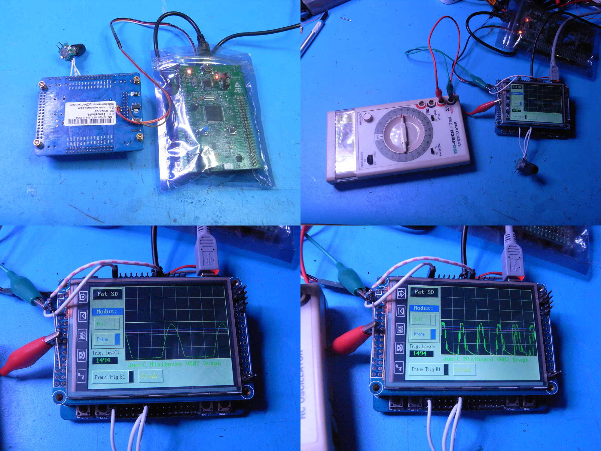 In der oben schon erwähnten Vorlage (Mini-STM32 Digital Picture Frame von hier) wurden Bilder aus einem Ordner der SD Speicherkarte auf dem Display dargestellt. Wer sich für diese Funktion interessiert, sollte sich die Vorlage besorgen, ich hab mich nur mit dem Zugriff auf die SD Karte genauer beschäftigt. Es war schon ein ziemlicher Akt, diesem Board USB und den Fat SD Kartenzugriff bei zu bringen. Entweder wurde nicht mit der SD richtig Kommuniziert, oder der USB funktionierte nicht.