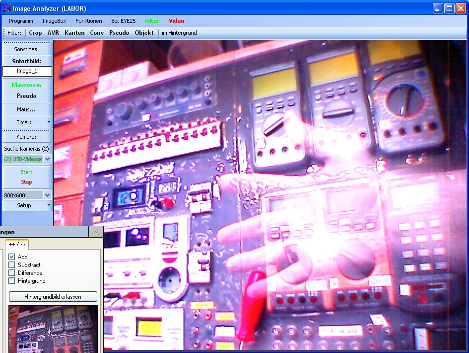 Wenn beide Bilder miteinander Addiert werden, erreicht man schnell den Bereich der Übersteuerung. Daher ist das Bild relativ hell, obwohl ich Referenz- und Kamerabild in etwas gedimmten Licht aufgenommen habe.