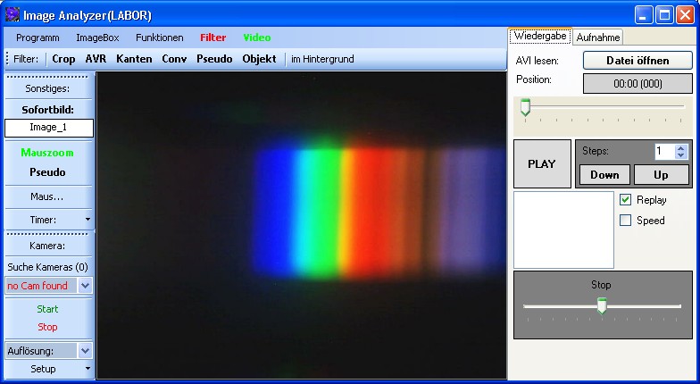 Aber nun zurück zur eigentlichen Funktion. Ein Video wird hier generell ohne Ton aufgenommen. Aber dafür, kann jedes Bild von der Kamera bearbeitet als Videobild übernommen werden. Es ist ebenso gewissermaßen möglich, damit ein AVI Video zu schneiden. Dafür muss man das gewollte Video öffnen und dann parallel dazu eins erstellen. Man kann ein Video wiedergeben und gleichzeitig ein anderes Aufnehmen... also eine Art Kopie erstellen. Zwischendurch kann man die Aufnahme anhalten, was anderes einfügen und dann wieder weiterlaufen lassen.