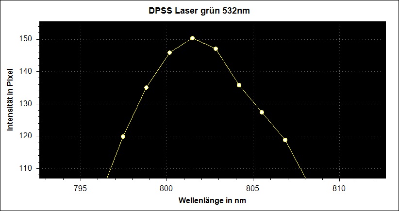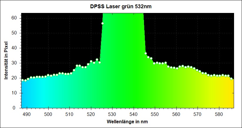 Das erste Bild zeigt das Spektrum eines grünen DPSS Laserpointers.
