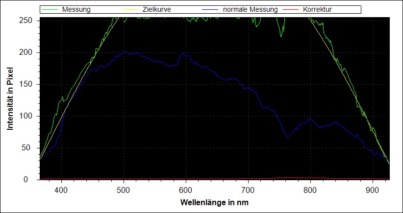 Wenn man die Zielkurve (anders als in diesem Beispiel) näher an der Empfindlichkeit des CCD-Chips orientiert, erhält man eine saubere Messkurve.