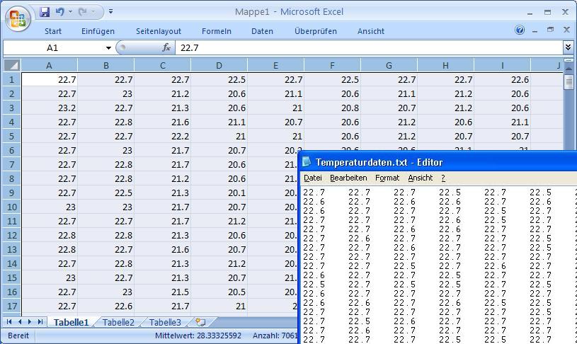 Die Daten von der FLIR Kamera liegen hingegen nur als Temperaturwert mit einer nachkommastelle vor (xx.x °C). Aber das reicht um eine Auswertung damit machen zu können.