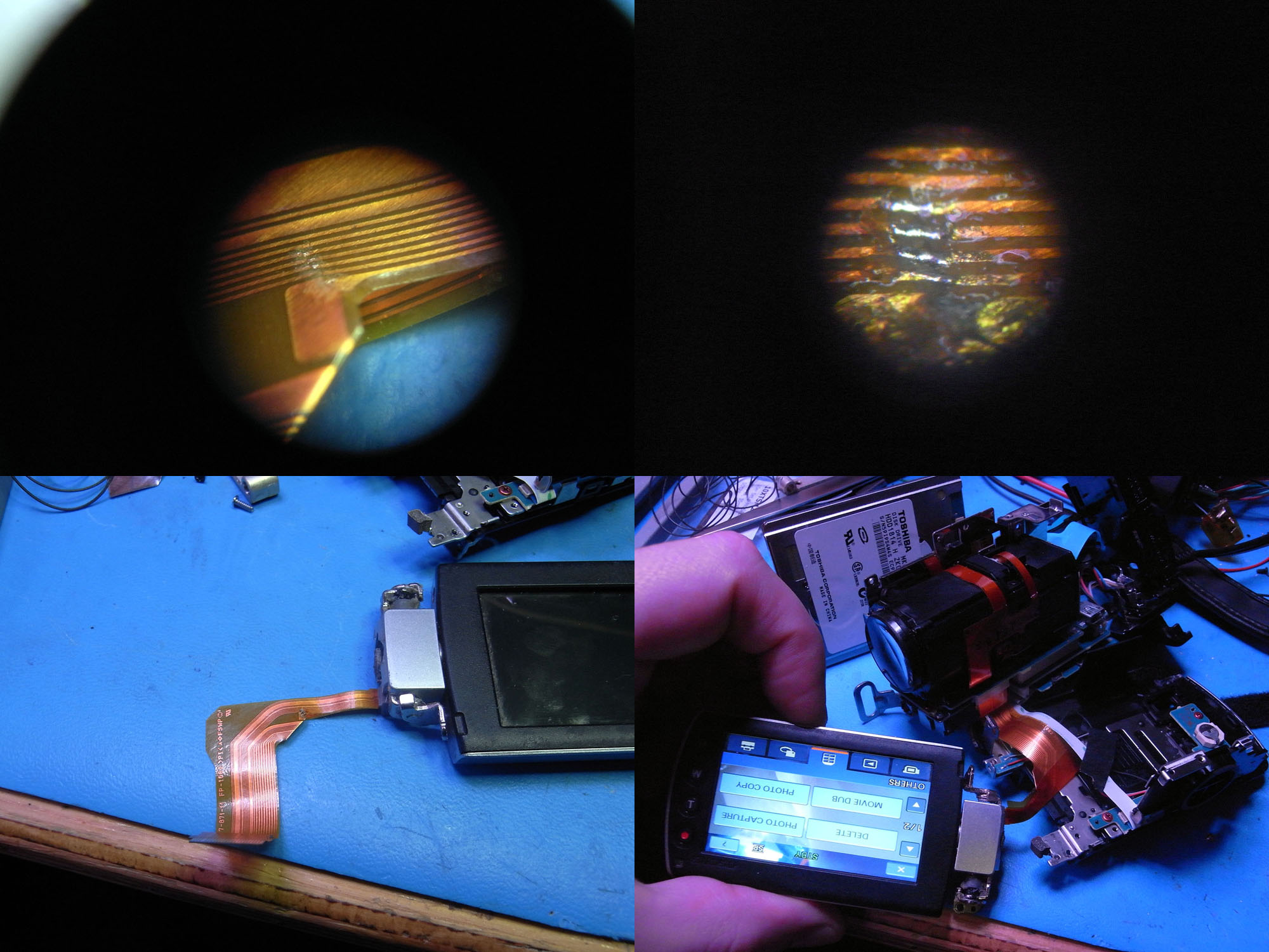 Den Camcorder hab ich als defekt erworben und das Display war komplett Weiß nach dem einschalten. Eigentlich wollte ich nur die Festplatte ausbauen, aber im Bereich des Displays war ein eingerissener Flexleiter.