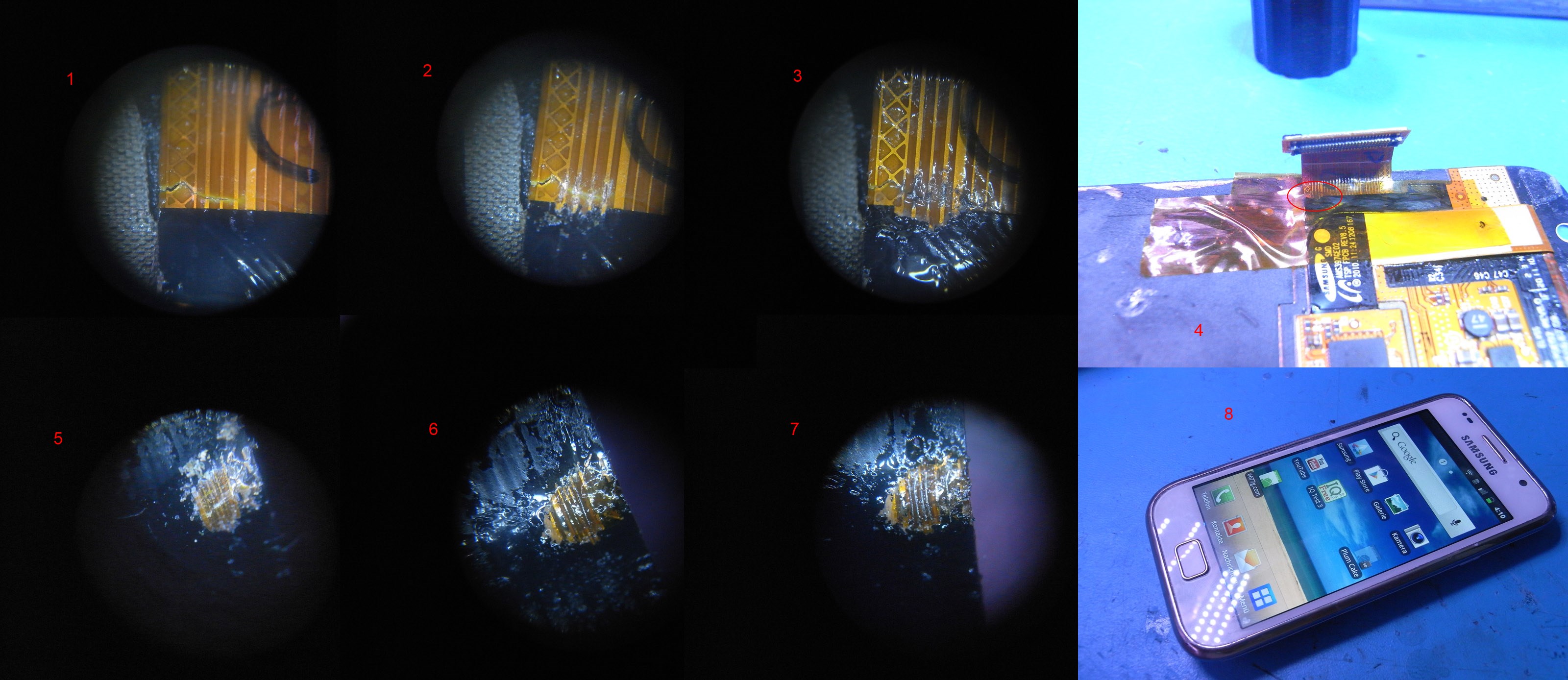 Bild 8: Nachdem auf beiden Seiten die Flexleitungen mit Adern zusätzlich verbunden wurden, funktionierte nun das Display wieder. Diesmal hab ich einen Kleber benutzt, der nachher eher wie Gummi ist. Dadurch sollte das Display nun auch bei Stößen etwas abfedern und nicht gleich an den Kanten einreißen.