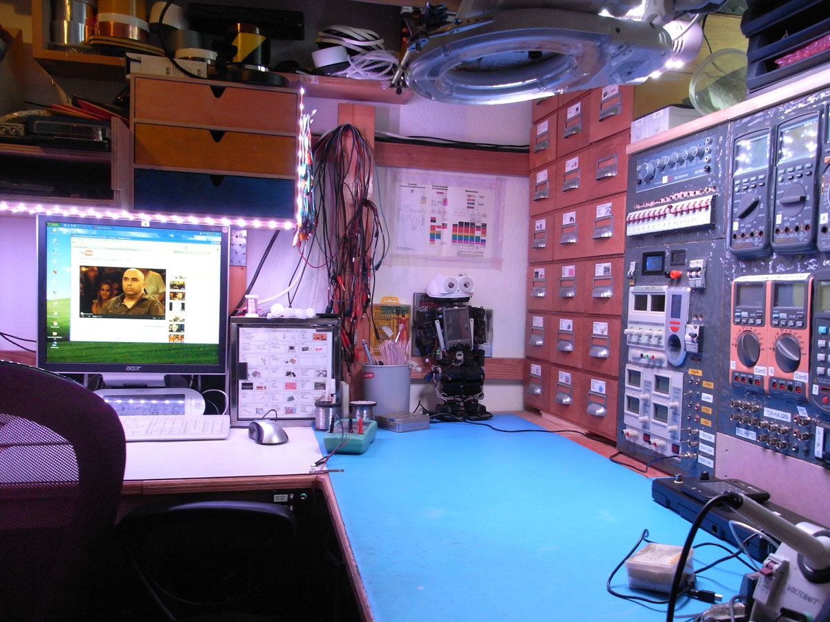 Zugegeben, Labor ist vielleicht etwas übertrieben. Es handelt sich um mein Zimmer, welches einen abgetrennten Bereich zum basteln beinhaltet. Es ist eine U-förmige Arbeitplatte auf der sich so ziemlich alles befindet, was ich zum ausleben meiner Bastelleidenschaften brauche.