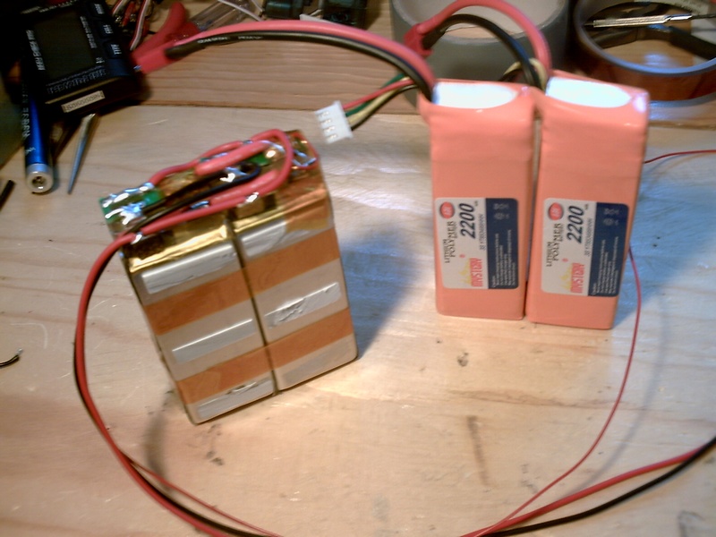 - Somit wurden aus: 2 Blöcken 11,1V (3 Zellen in Reihe) 2200 mAh