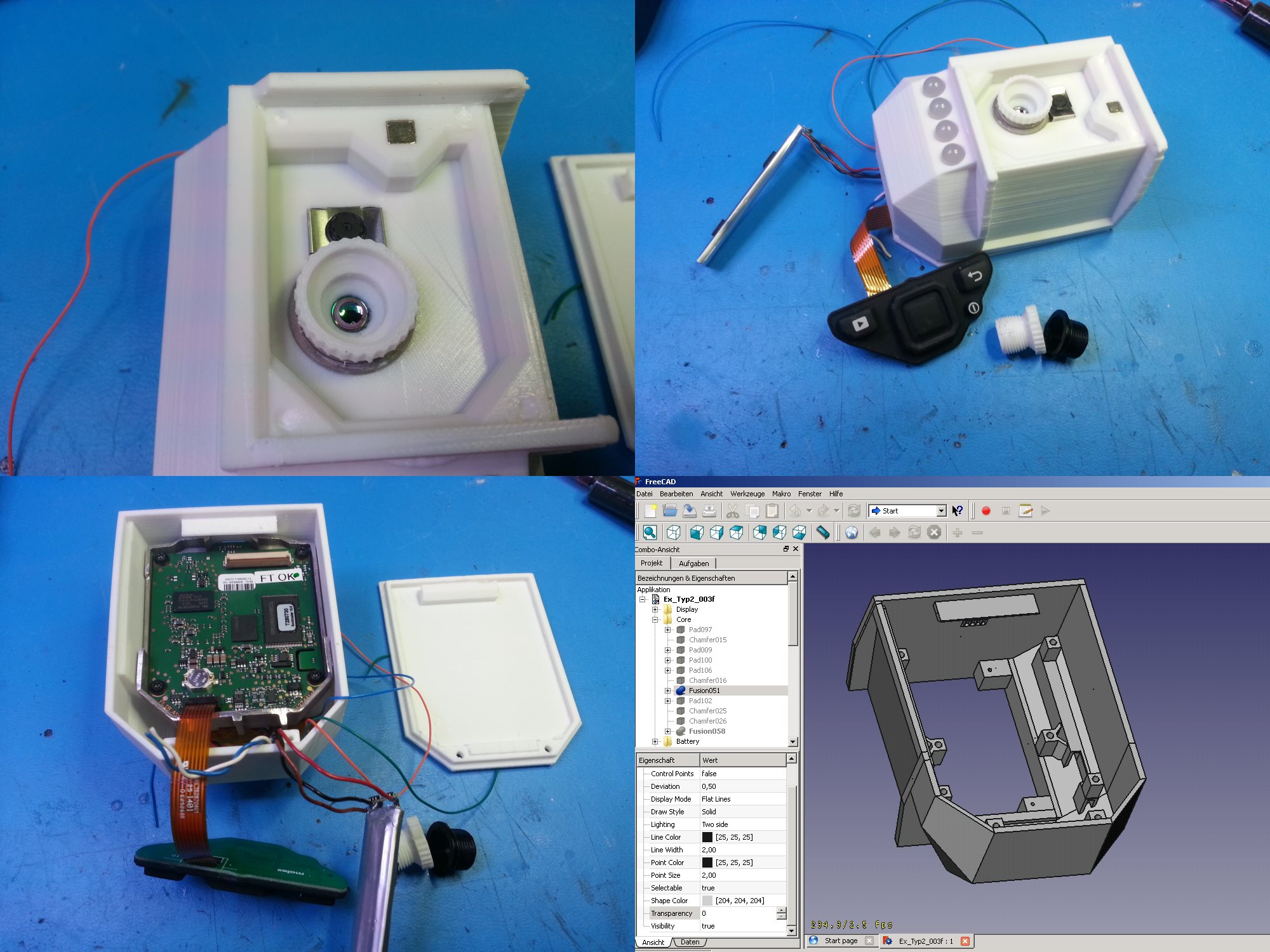 Hier eines der ersten Gehäuse-Modelle. Ich habe mich bei dem Neuen Gehäuse mehr am Üblichen Kameradesign orientiert, was sich in der Ergonomie gegenüber dem Vormodell als vorteilhaft zeigt, dafür aber auch mehr Platz braucht. Die Kamera liegt jetzt wesentlich besser in der Hand und ist auch mit einer Hand besser nutzbar.