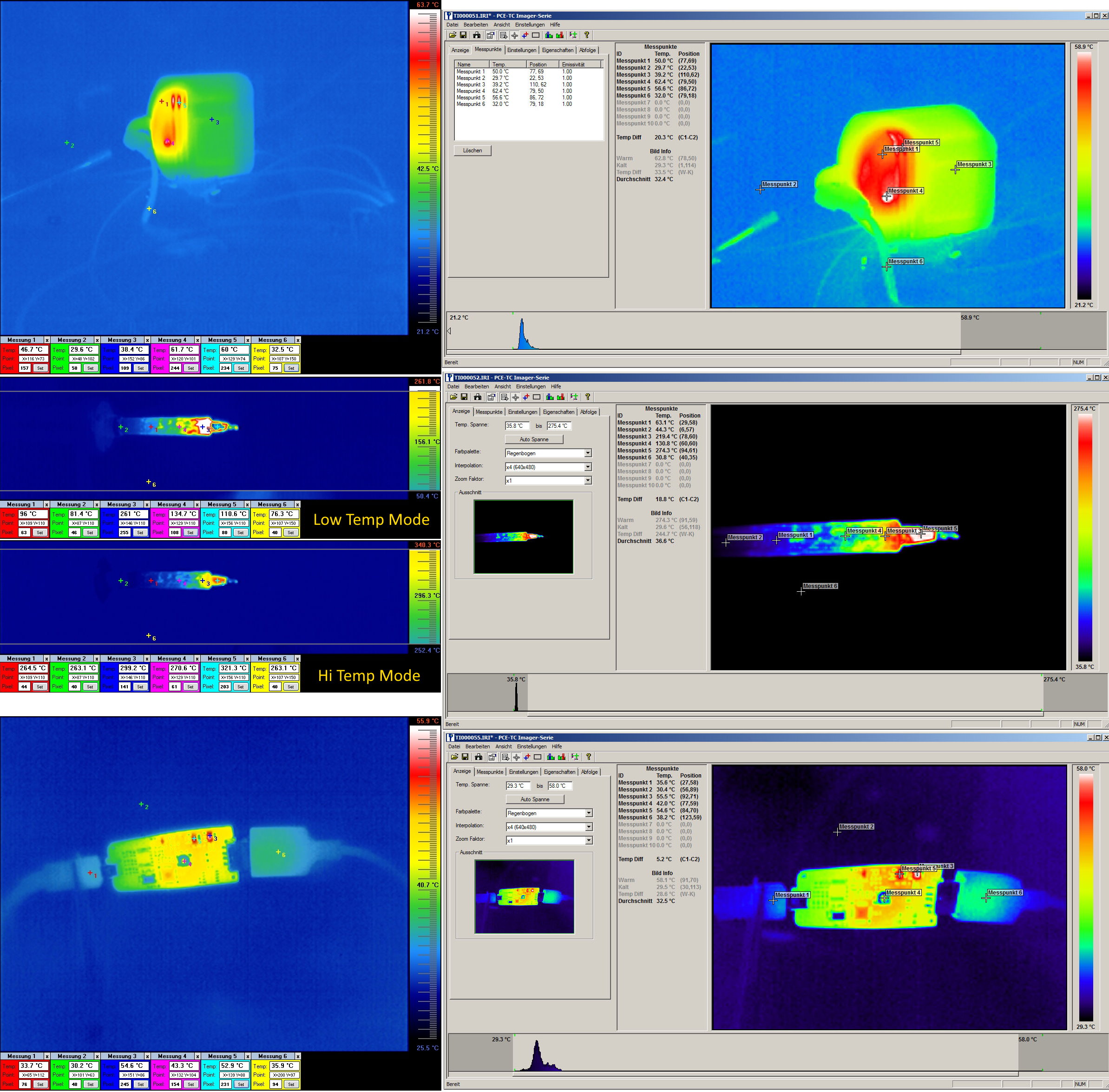 Aber der Low Mode scheint eher bis +300°C zu gehen und den Hi Mode hab ich bisher nicht ausreizen können. Außerdem zeigte die Kamera im Hi-Modus noch Temperaturen von ca. 40°C an.