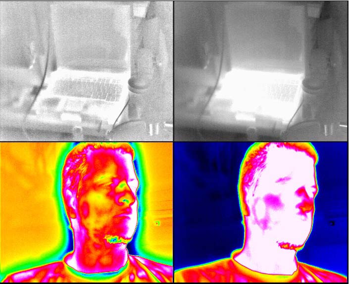 Das Notebook wurde ca. 30 min vorher ausgeschaltet, war also nur noch schwach warm. Aber man kann erkennen, dass der ENH Filter recht hilfreich ist, wenn man auf Details aus ist. So kann man in beiden Bildern mit ENH mehr sehen (vor allem in Gebieten mit ähnlicher Temperatur) als ohne.