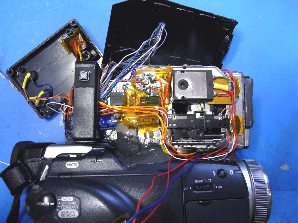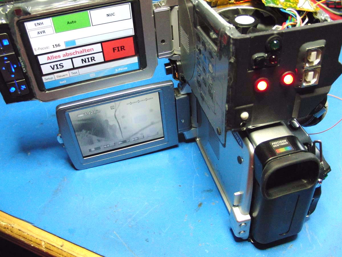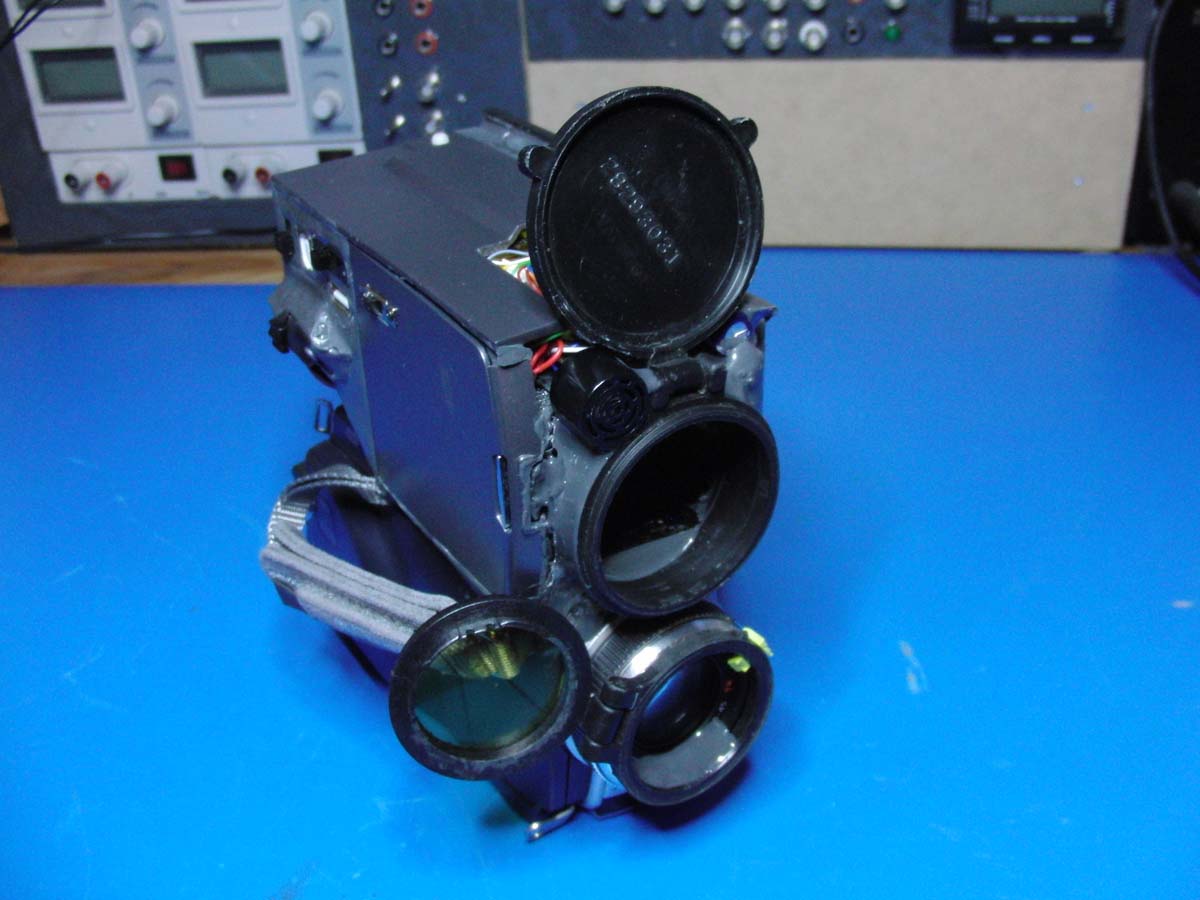Bevor ich die TRV80E erworben habe, wurde ein erster Kombinationsversuch mit der HC30E unternommen. Das Mini-DV Bandlaufwerk wurde entfernt und durch die Wärmebildkamera ersetzt. Allerdings fehlte so der Platz für einen PDA zum Steuern. Außerdem gab es noch ein paar andere Dinge, die aber weniger relevant sind... jedenfalls entschied ich mich nach den ersten Versuchen zu einem anderen Camcorder.