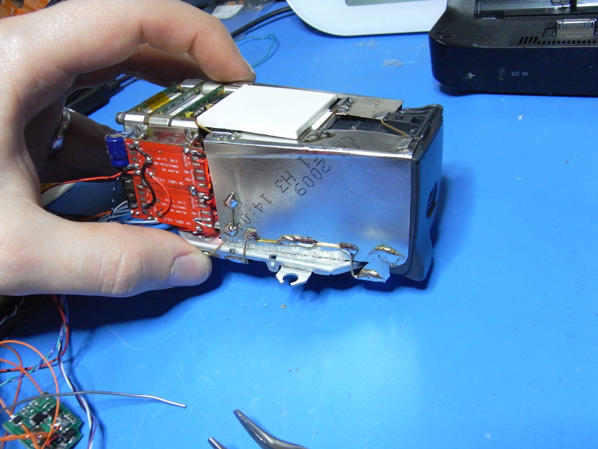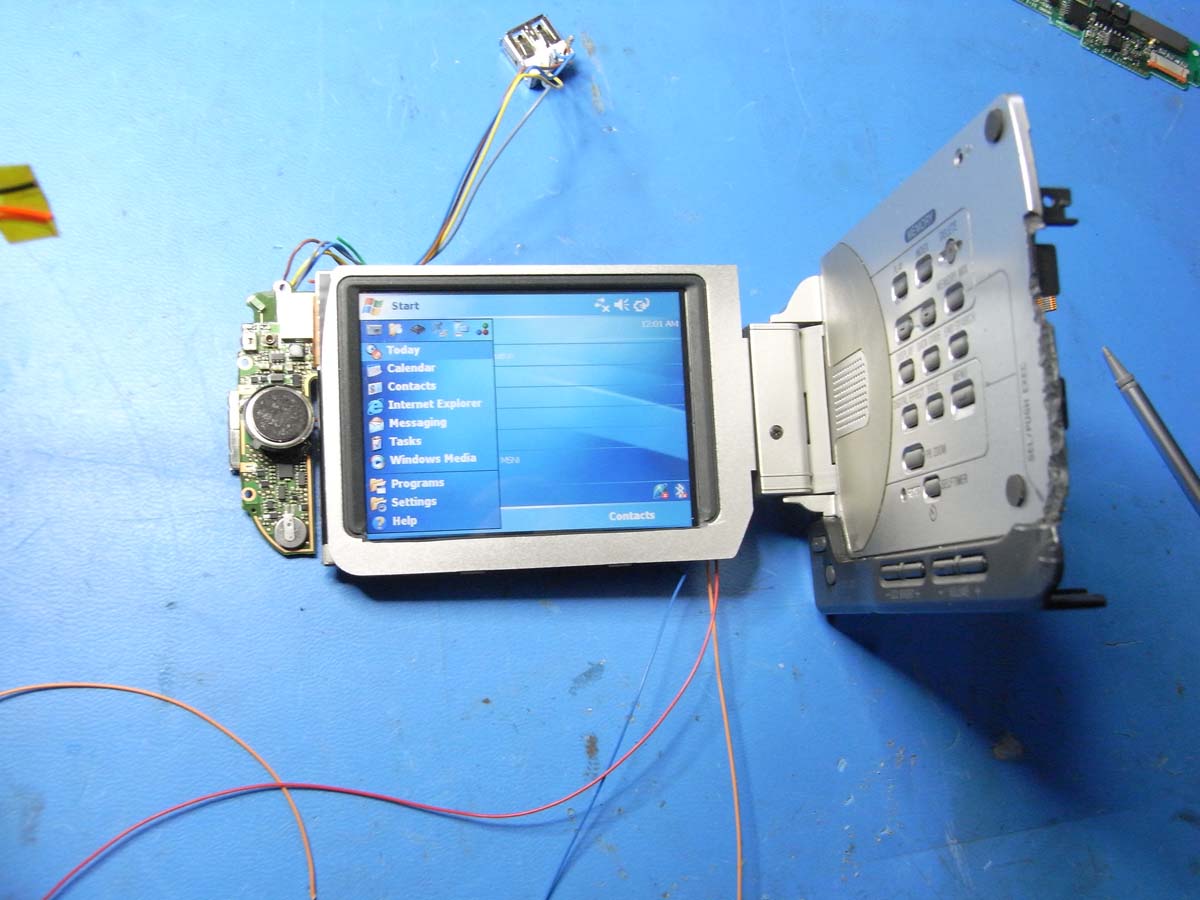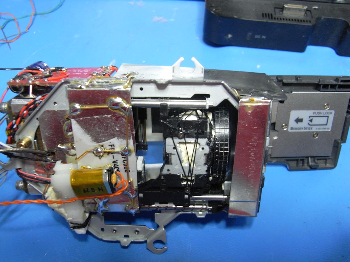 Bevor ich die TRV80E erworben habe, wurde ein erster Kombinationsversuch mit der HC30E unternommen. Das Mini-DV Bandlaufwerk wurde entfernt und durch die Wärmebildkamera ersetzt. Allerdings fehlte so der Platz für einen PDA zum Steuern. Außerdem gab es noch ein paar andere Dinge, die aber weniger relevant sind... jedenfalls entschied ich mich nach den ersten Versuchen zu einem anderen Camcorder.