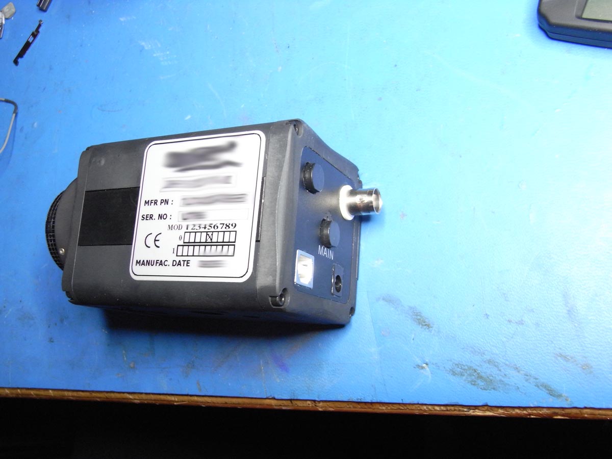 Leider hab ich vergessen, ein Bild vor "Urzustand" der Kamera zu machen und das Auktionsbild ist recht Auflösungsschwach. Früher war an der Kamera nur ein Steckanschluss. Das Kabelset hatte dann einen Anschluss für Stromversorgung, ein BNC für AV-Out und eine Sub-D 9 Polig für PC Verbindung.