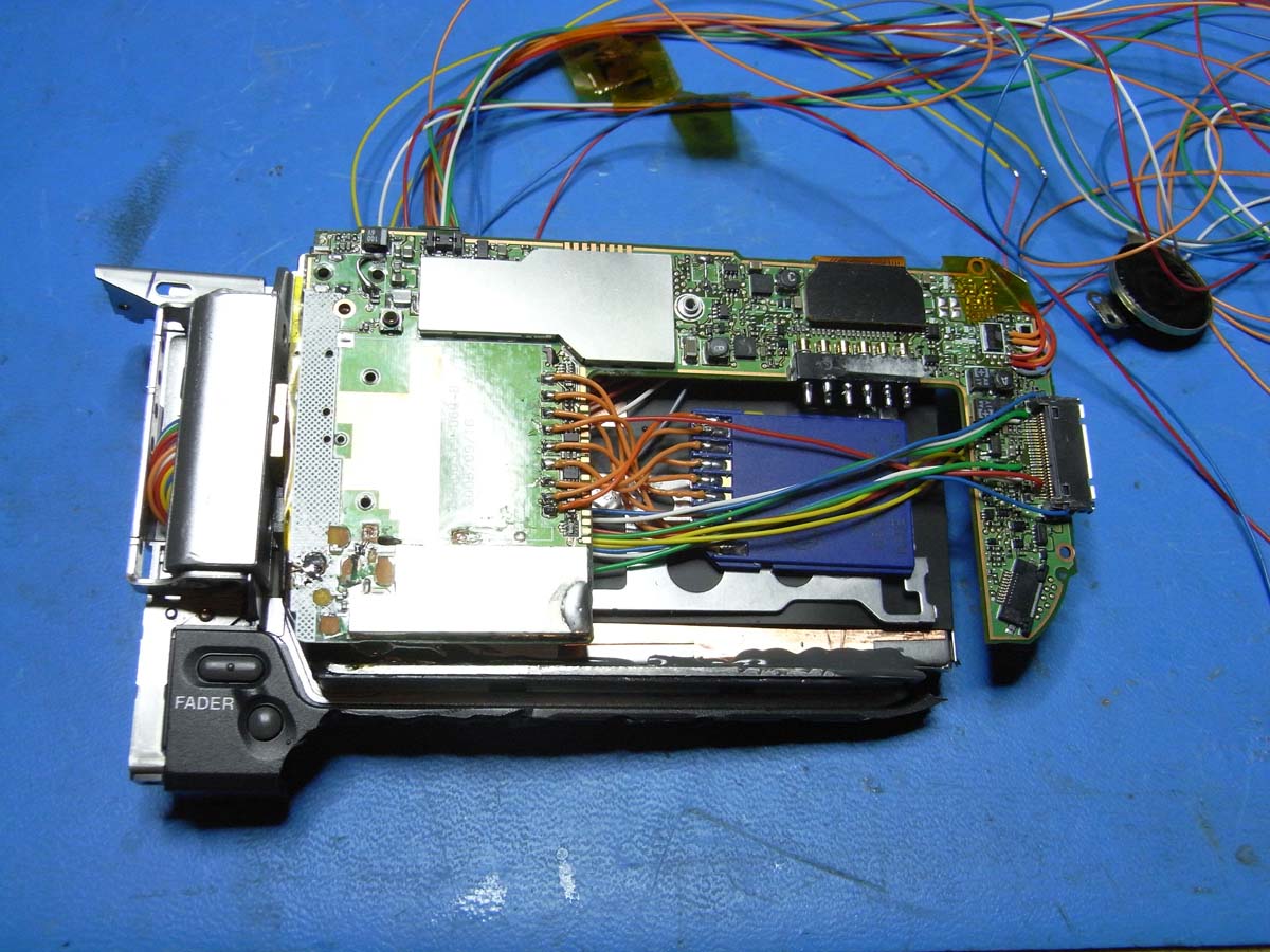 Hat ein ähnliches Format die die Canon Kamera. Die erste Kamera, die ich als defekt erworben habe. Sie ließ sich meistens nicht einschalten, was an einem gebrochenen Flexleiter lag, wie sich später herausstellte. Das Problem dabei war, dass über diesen Flexleiter die Kamera nicht nur eingeschaltet wird... auch die Menüsteuerung und ein paar andere Funktionen liefen darüber. Ich konnte den VCR (Videorecorder) Modus kurz testen. Es zeigte sich, das bei Sony scheinbar ein erkanntes Videosignal direkt durchgeschaltet wird. - Sony DCR-DVD101E