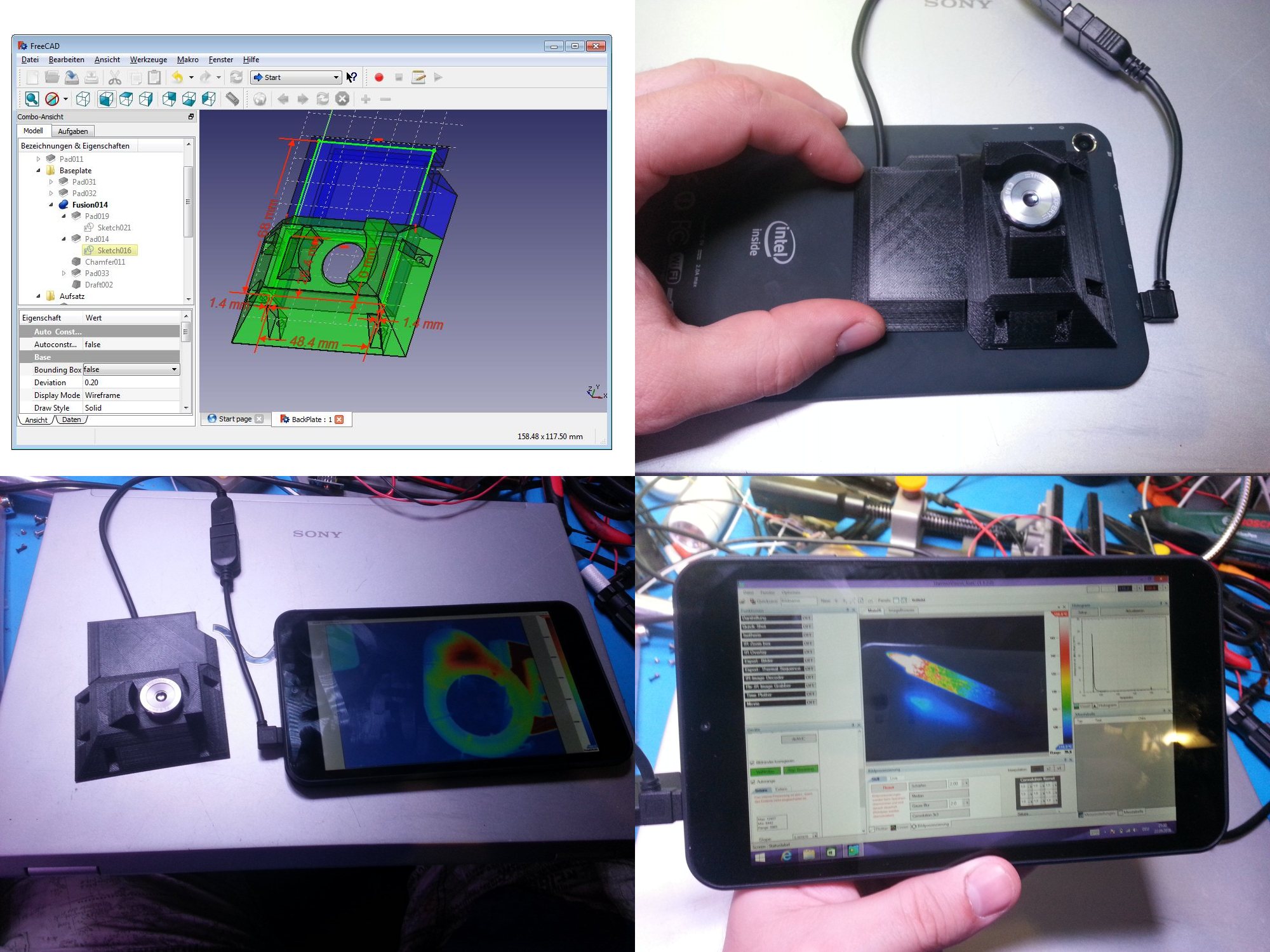 Hier ein Ansatz, der bisher weder verworfen noch richtig umgesetzt wurde. Ein 7 Zoll Notebook mit Win 8.1 wird dabei zusammen mit der Kamera benutzt, welche wiederrum per DLL oder über WinUSB verwendet werden kann. Mir ist das Tablet aber zu groß, ein 5 Zoll Handy wäre deutlich besser.