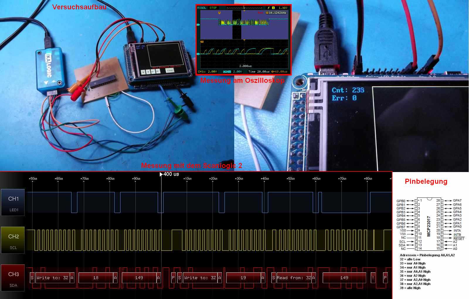 Der Hauptgrund für die Auseinandersetzung mit dem I2C, war die Verwendung des MCP23017 Chips.