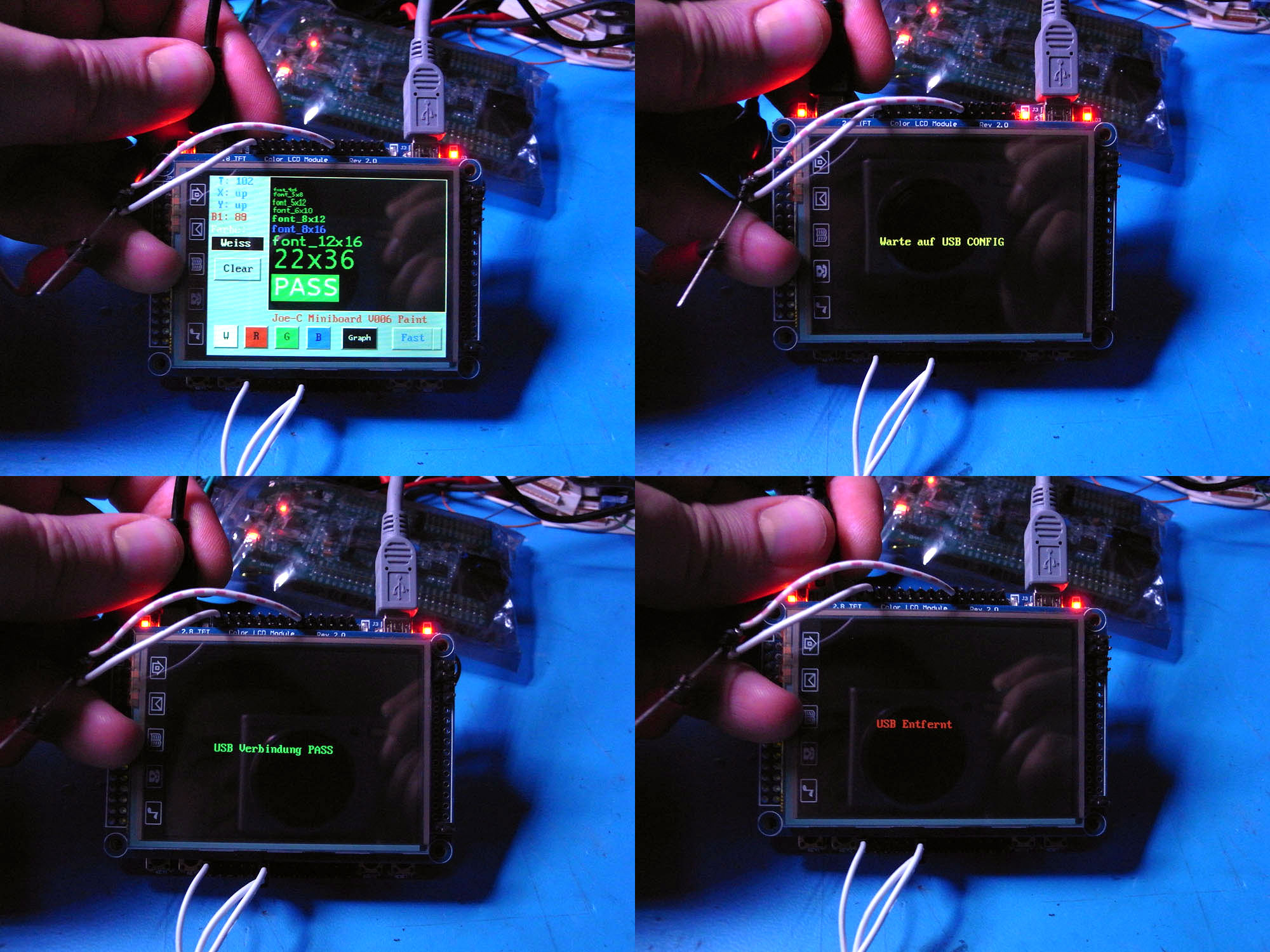 So bald bei V006 auf FatSD geschaltet wird, wird zuerst das Filesystem gemounted. Wenn dann in grün "Init PASS" steht, ist das schon mal ein gutes Zeichen. Fehlende oder falsch Formatierte Karten werden jedenfalls mit einem roten "Init FAIL" angezeigt und dann ist davon auszugehen, dass die 4 Testfunktion auch nicht arbeiten.