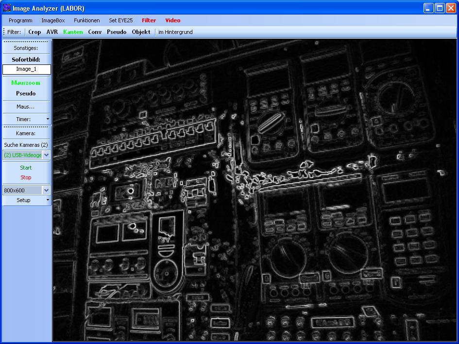 Es gibt einen online und einen offline Timer. Der online Timer greift auf das Kamerabild zu, der offline Timer auf ein Bild im Hintergrund (von der Kamera aufgenommen, oder vom PC geladen über Drag & Drop). Wenn man nur einen Kantenfilter auf ein Standbild anwenden will, ist es natürlich von Nachteil, dass sich das Bild mit den gleichen Werten aktualisiert. Aber ausgelegt ist das Programm ja für die Verwendung einer Kamera. Und da muss jedes Bild aufs Neue bearbeitet werden.