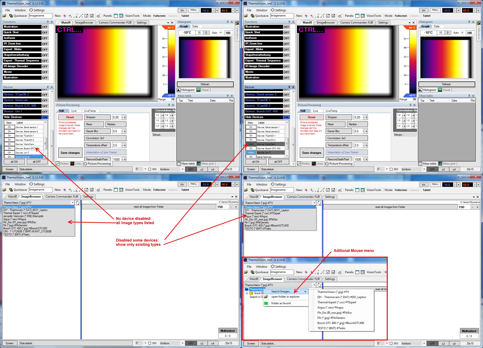 - Thermal sequence (radiometrisches video) abgeschaltet, benötigt einen Strukturwechsel, nachdem die Bildspeicherung auf Planck umgestellt wurde (es ist geplant die mit Version 1.10.0.0 erstellten Video Sequenzen weiter einlesen zu können)