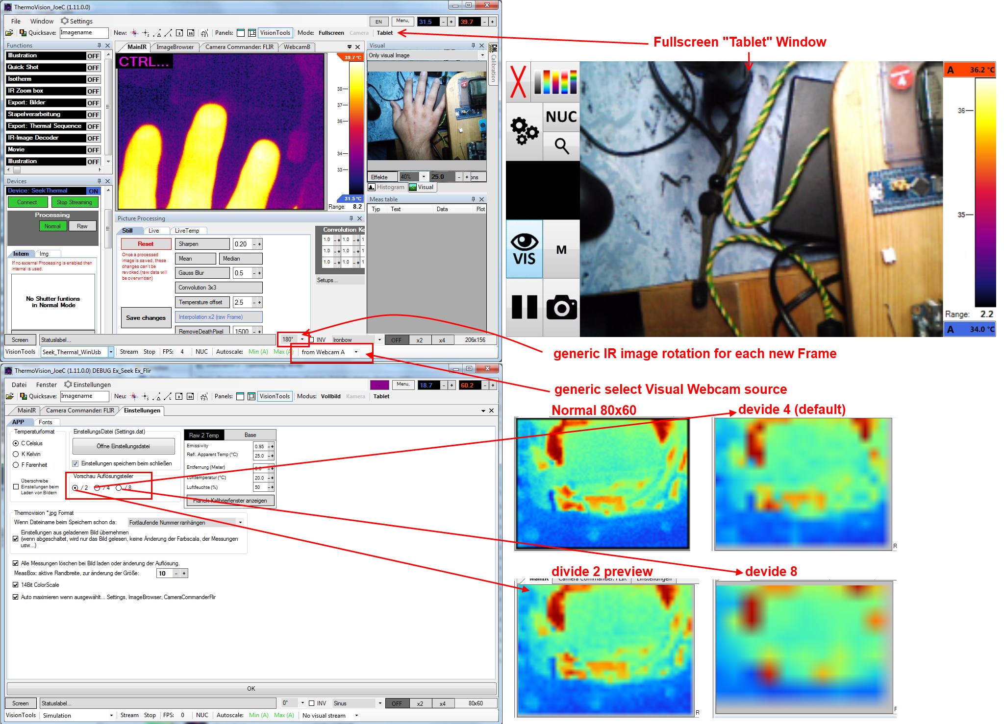 In der Menüleiste unten gibt’s jetzt eine Auswahl für die Bildrotation (0°,180°,+90°,-90°). Diese gilt für das einlesen von IR Bildern, falls vorhanden auch für Visuelle Bilder und für den IR-Stream von Kameras.