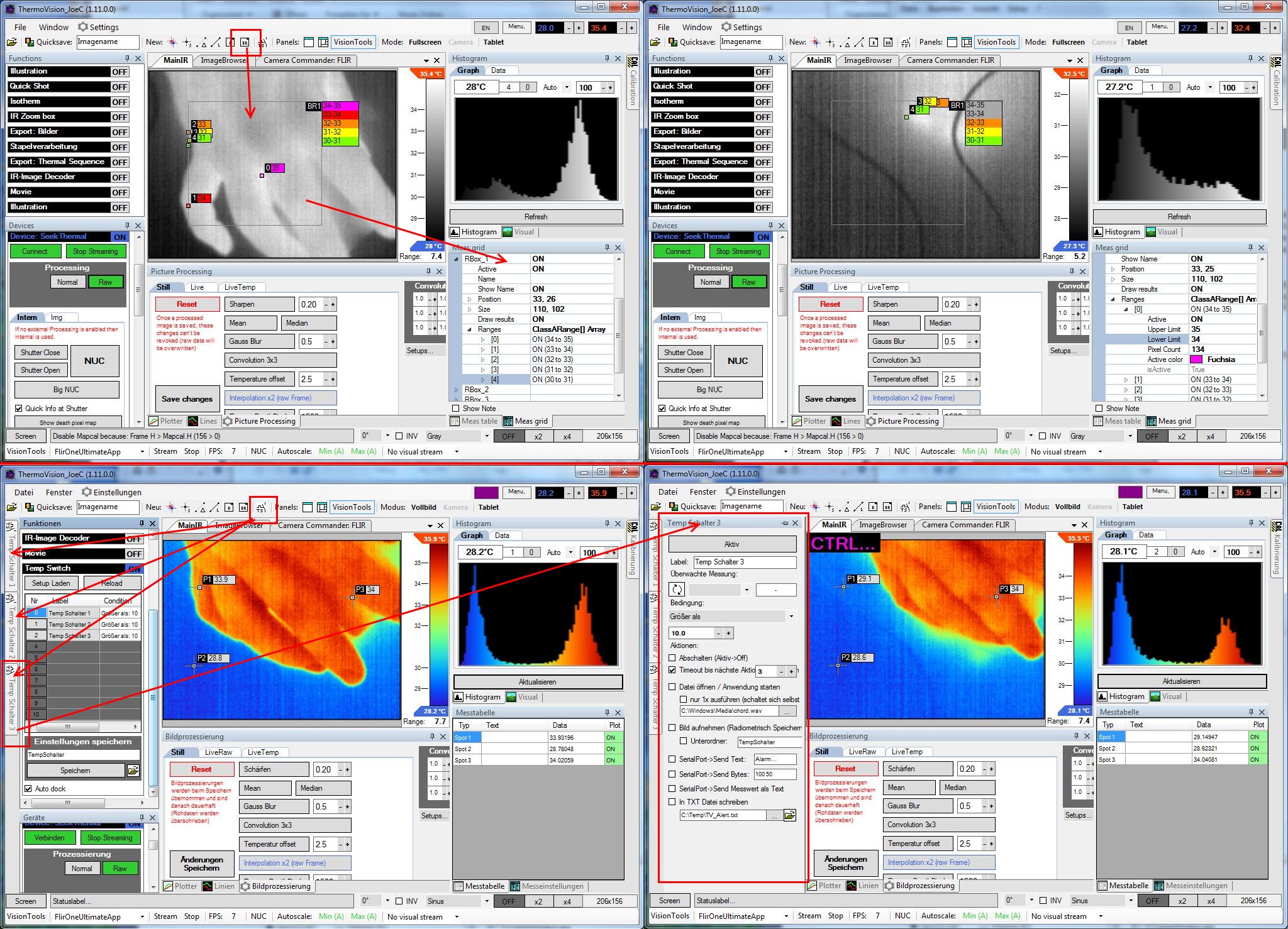 Man definiert ein Rechteck und kann innerhalb dieses Rechtecks bis zu 5 Temperaturbereiche definieren. Wenn die höchste Temperatur in dem Bereich gefunden wurde, wird sie angezeigt.