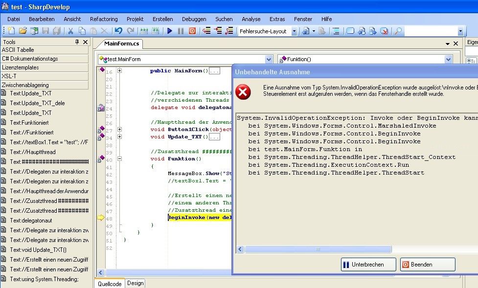 bekommt man gleich einen Laufzeitfehler: Ungültiger threadübergreifender Vorgang.