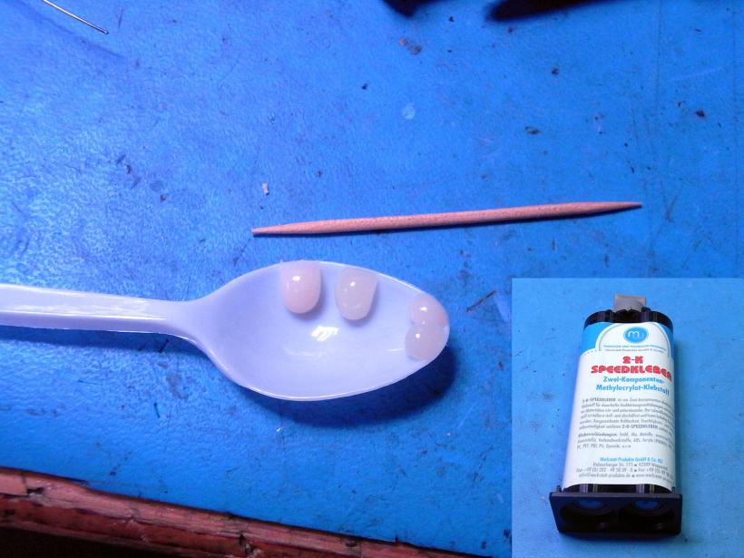 Außerdem lässt er sich mit Einweglöffeln und Zahnstochern in recht kleinen Mengen gut anrühren, wodurch man keinen Kleberverlust in der Mischdüse hat.