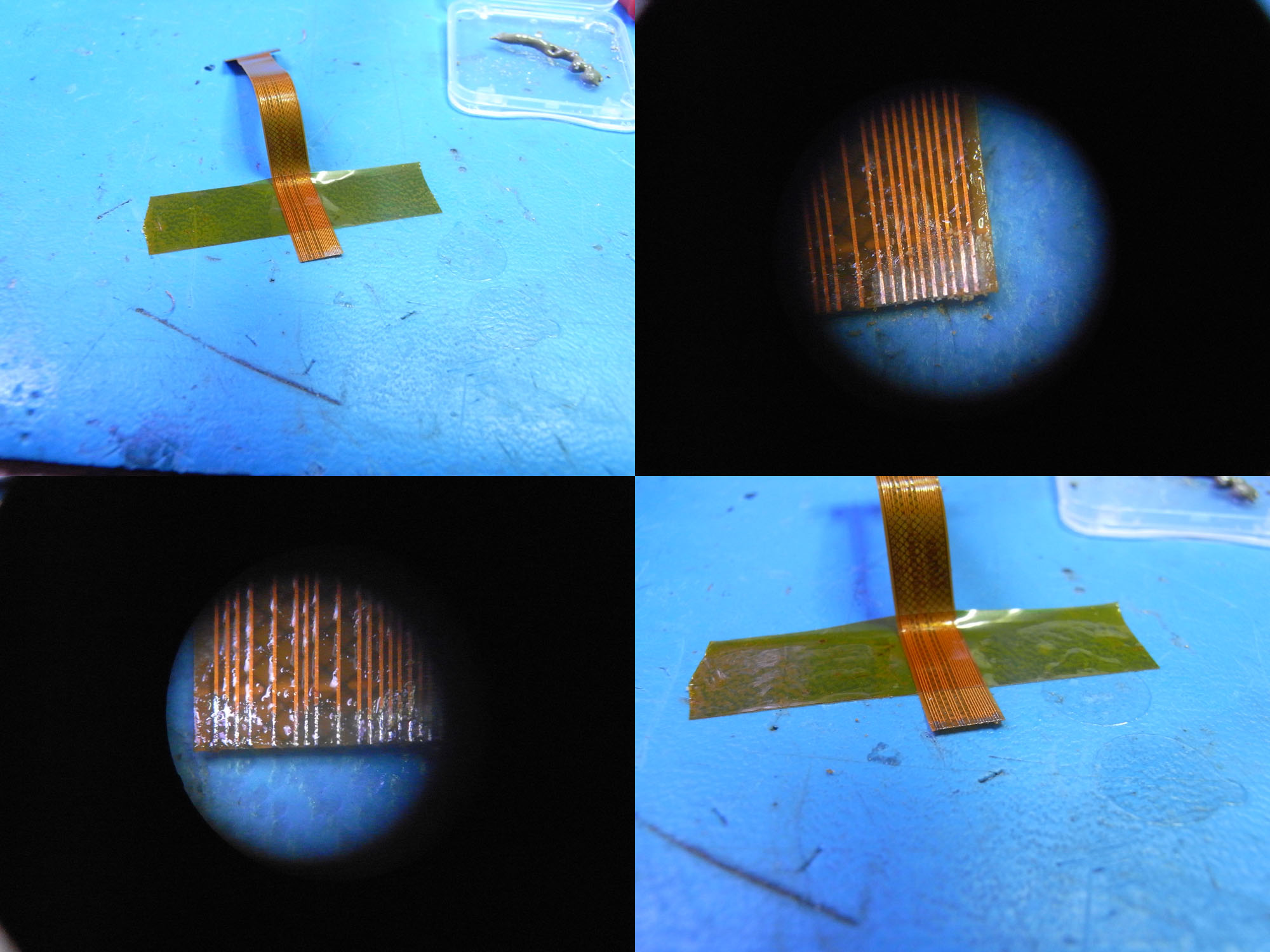 Den Camcorder hab ich als defekt erworben und das Display war komplett Weiß nach dem einschalten. Eigentlich wollte ich nur die Festplatte ausbauen, aber im Bereich des Displays war ein eingerissener Flexleiter.