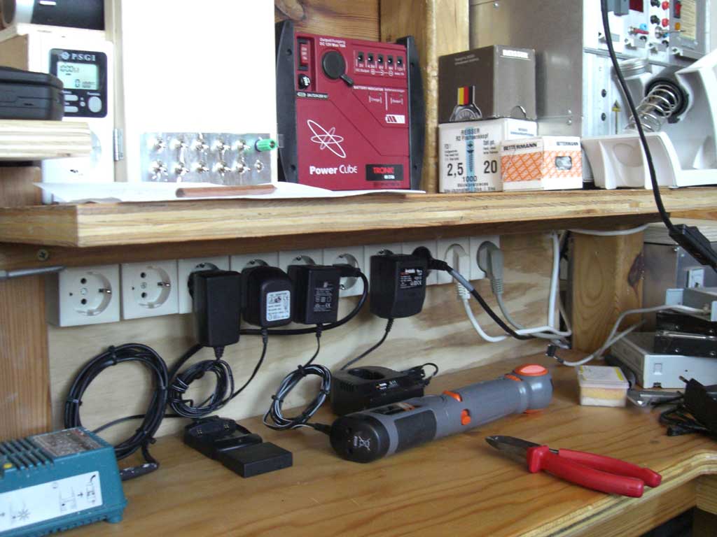 Es mag etwas paradox erscheinen, einen solchen Aufwand mit schaltbaren Steckdosen zu betreiben. Aber jetzt hab Ich's viel entspannter mit den ganzen Netzteilen. Ich muss sie weder suchen noch mir Gedanken um irgendwelches Kabelgewirr zu machen. Ich stecke den Accu in die Ladestation und leg einfach den Schalter um, fertig. Ist ohnehin besser so bei Geräten, die nur sinnlos Stand-by Energie wegschlürfen würden (sofern ich davon welche hab).