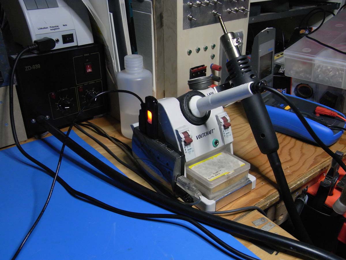 Die Lötstation, mit der ich früher schon gearbeitet habe, leistet mir auch heute noch gute Dienste.