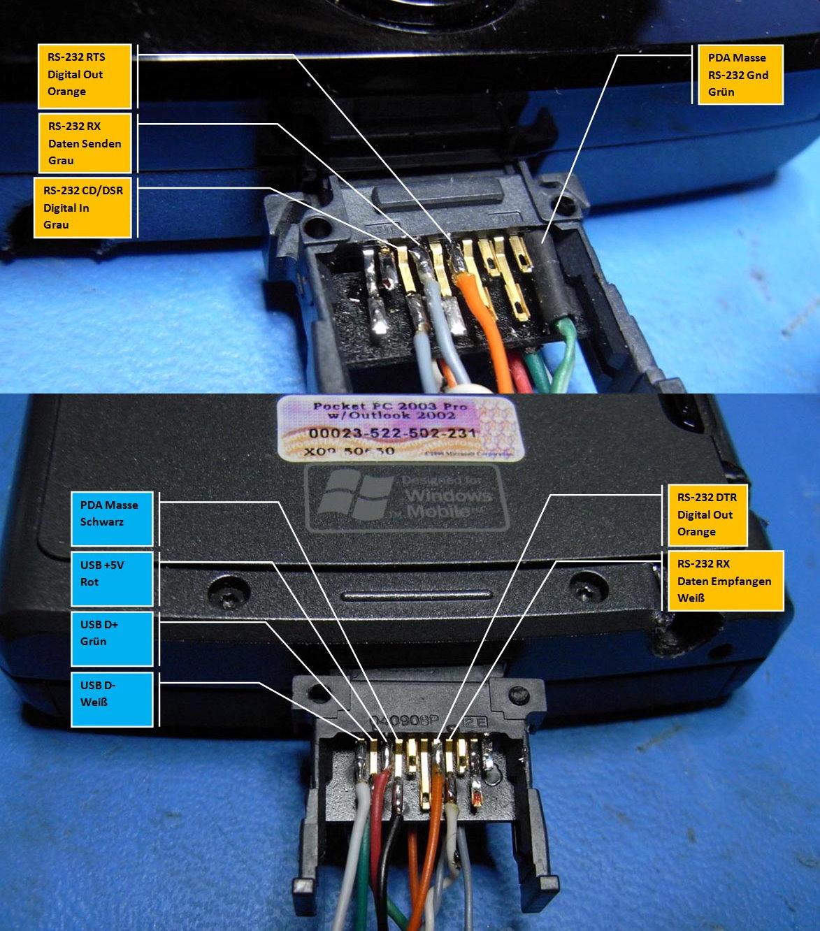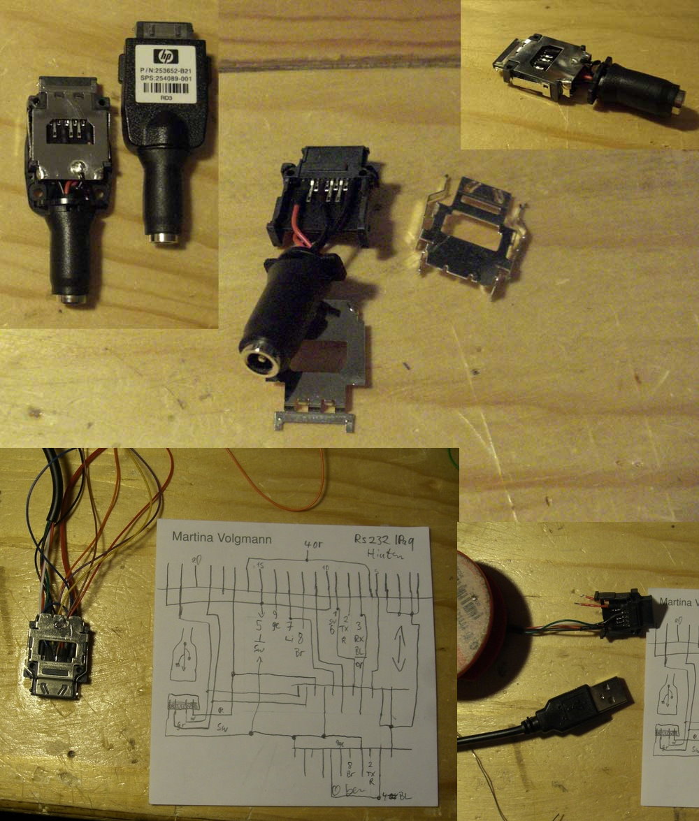Aber ich habe mich dennoch, nach einigen Experimenten, für die IPAQ Linie von Compaq/HP entscheiden. Dort werden selbst aktuelle Modelle noch mit einer direkten RS-232 ausgestattet. Außerdem, lässt sich ein Datenkabel recht gut herstellen, wenn man den Stromadapter besitzt.