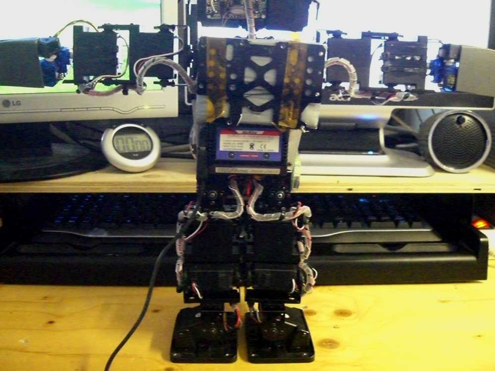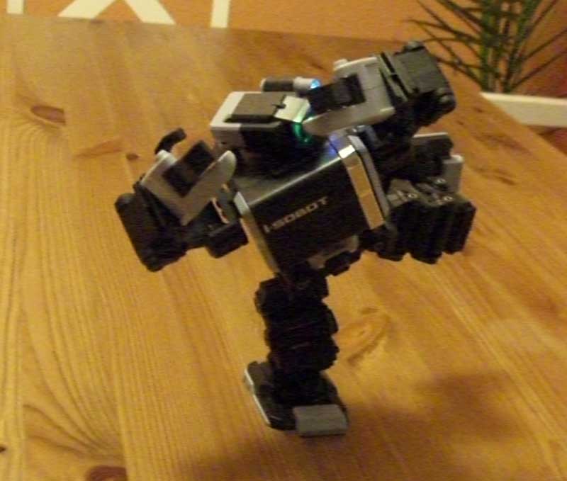 Ein sehr interessanter kleiner Roboter. Er hat 17 Servos und 1 eingebauten Gyro (Gleichgewichts Sensor). Ich hab ihn damals gekauft, ob man‘s glauben will oder nicht, als Stativ.