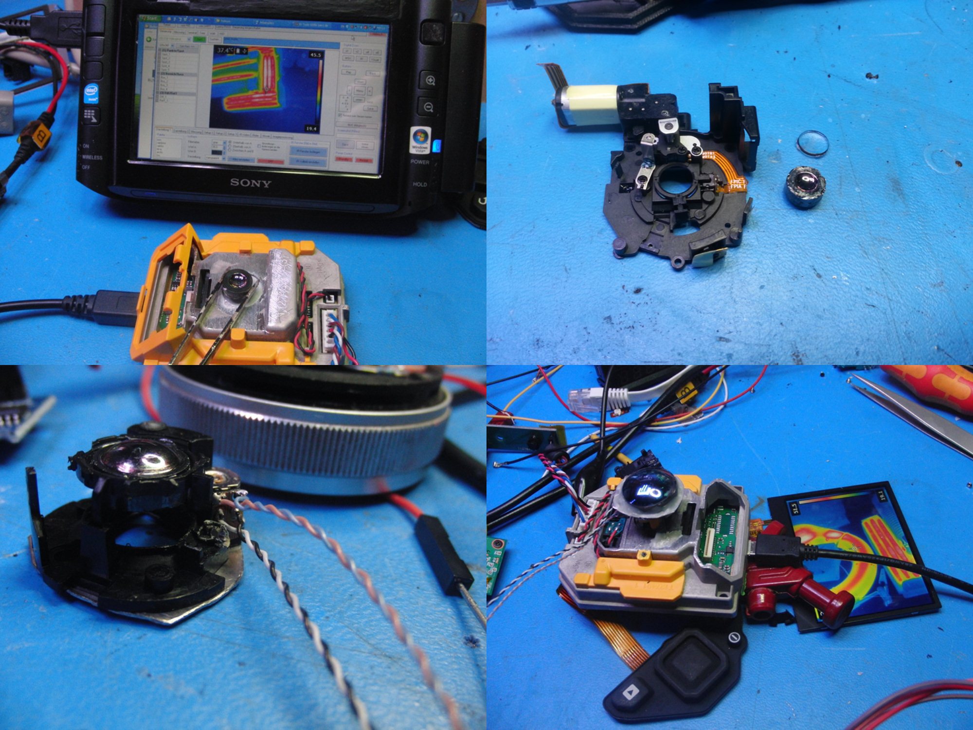 Ich hab dafür ausrangierte Digitalkameras zerlegt. Hauptproblem ist meistens, das die Linsen entweder einen zu geringen Durchmesser hatte und die IR-Linse da nicht rein passte, oder aber die Mechanik zu labil oder zu groß war. War nicht leicht was zu finden, was normalerweise leichte Kunststofflinsen hält und nun die IR-Linse aufnehmen kann.