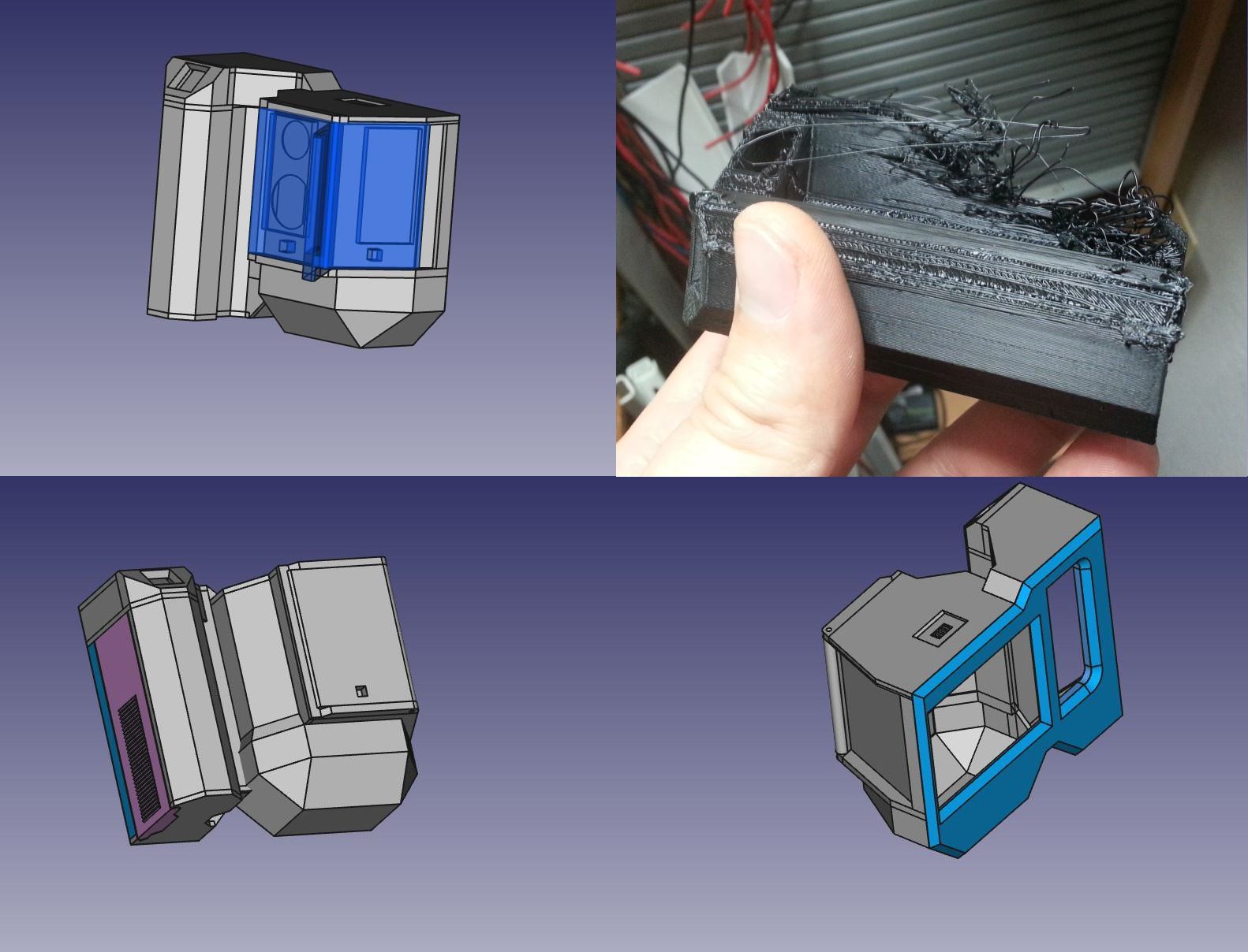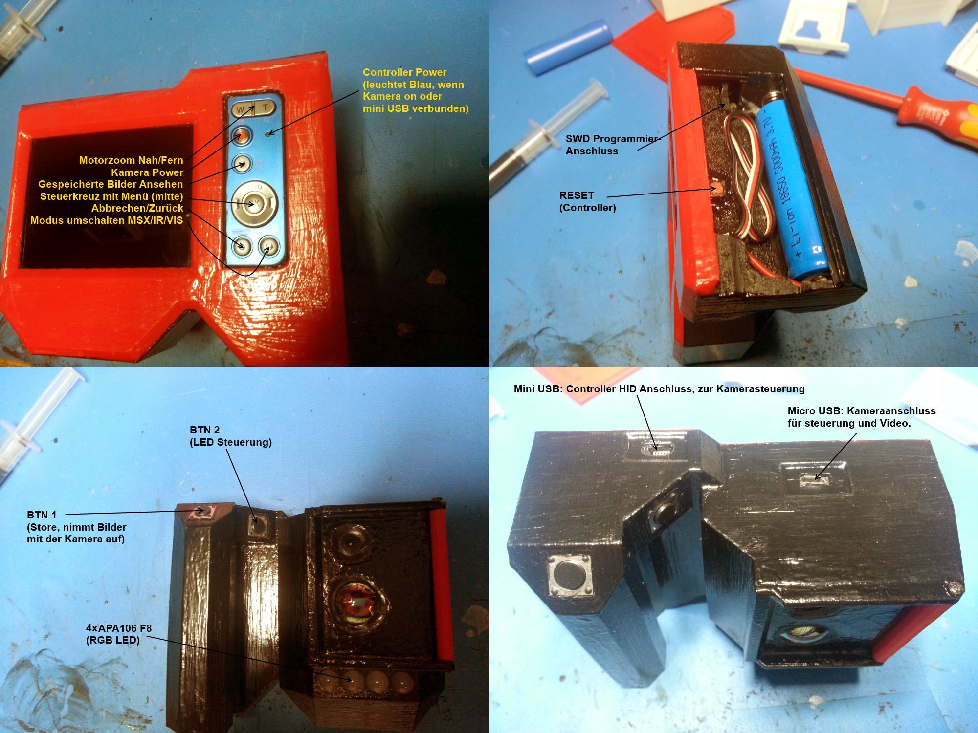 Hier eines der ersten Gehäuse-Modelle. Ich habe mich bei dem Neuen Gehäuse mehr am Üblichen Kameradesign orientiert, was sich in der Ergonomie gegenüber dem Vormodell als vorteilhaft zeigt, dafür aber auch mehr Platz braucht. Die Kamera liegt jetzt wesentlich besser in der Hand und ist auch mit einer Hand besser nutzbar.