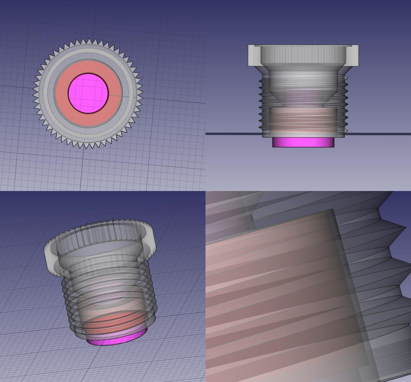 Der Linsenhalter muss mit einer sehr feinen Auflösung ausgedruckt werden, da sonst das Gewinde zu grob wird und sich schlecht schrauben lässt. Aber es ist auch eine gute Vorlage, falls ein größerer Linsenkegel gebraucht werden sollte.