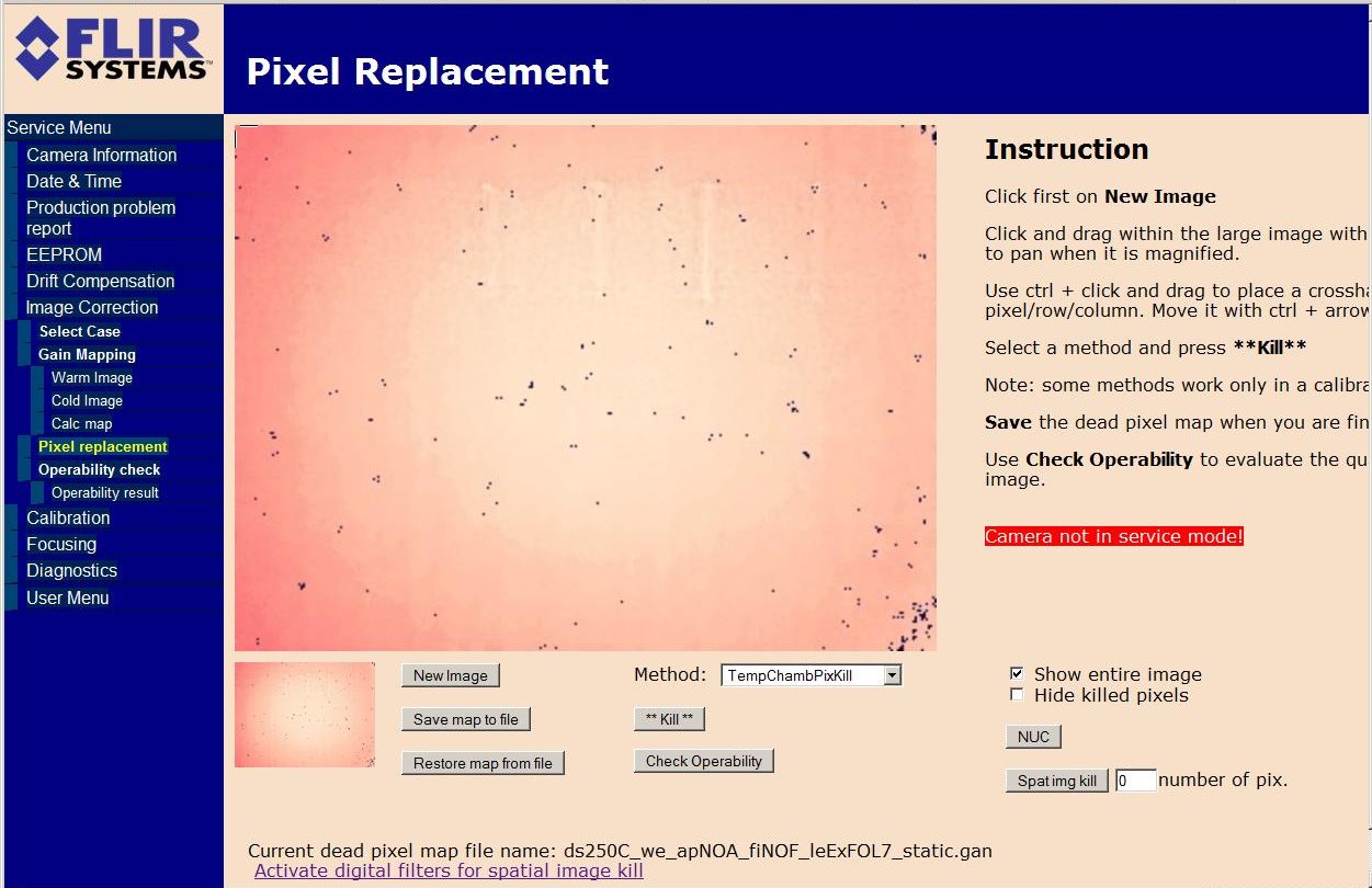 Bisher hab ich nur bei der Opgal E25 (erst Wärmebildkamera 352x288 und später Wärmebildkamera Opgal Eye R25) erweiterte Einstellungen vorgefunden. Beispielsweise das entfernen defekter Pixel ist eine sehr feine Funktion... besser ist natürlich, wenn keine Pixel defekt sind. Aber wenn mal einer sich nachträglich verabschiedet, ist es schon schön, selbst was dagegen machen zu können.