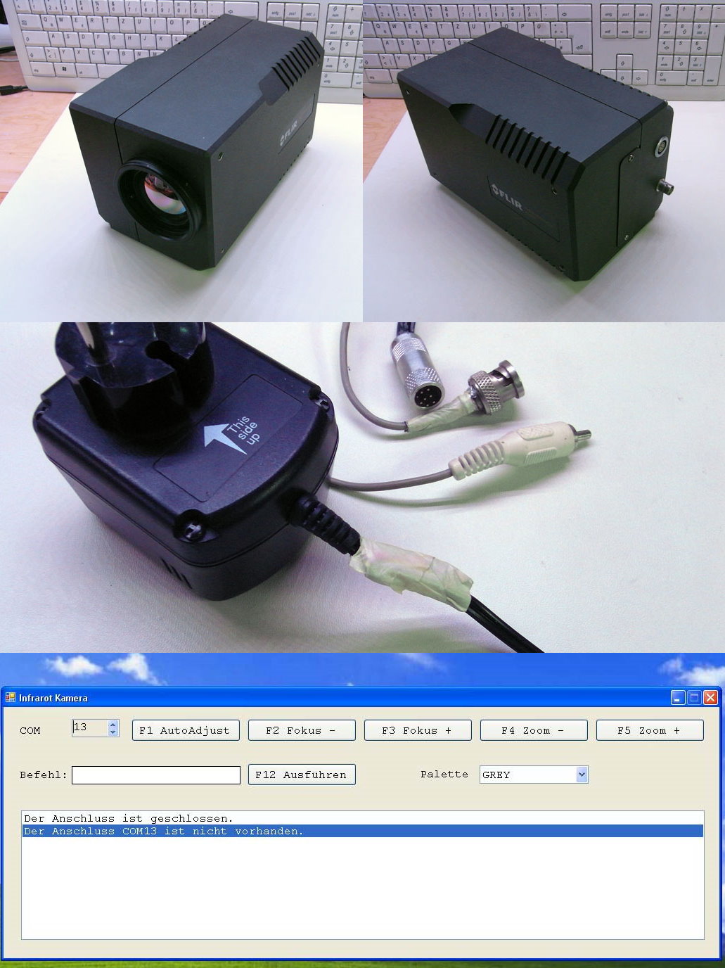 Wieder einmal eine Ebay Entdeckung. Ich hab darauf spekuliert, mit dieser Kamera meine Pce TC3 abzulösen. Diese Kamera hat eine höhere Auflösung und da sie laut Bedienungsanleitung definierte Level und Span Werte zugewiesen bekommen kann, hielt ich eine Softwareseitige Anpassung zur Temperaturmessung für möglich.