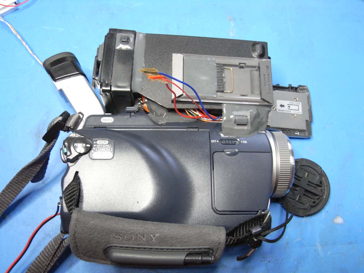 Ich hab durch Messungen am Mainboard die Signale für VCR und Memory abgegriffen. An den Videoanschluss hab ich von innen eine Verbindung hergestellt. Auch das Schaltsignal für Nightshot wurde von innen nach außen geführt.